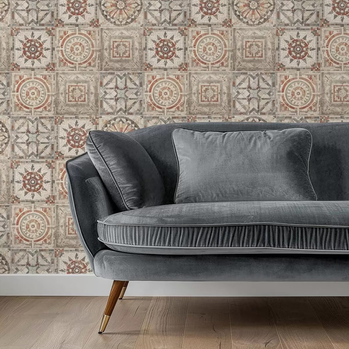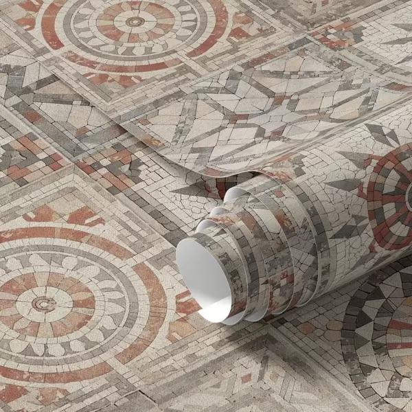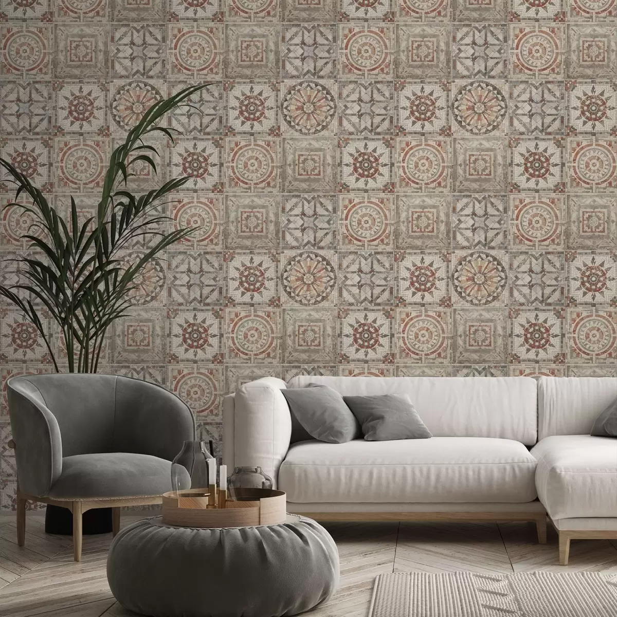 Papel pintado Medallones antiguos de mosaico de piedra con detalles desgastados. Nr. a01042
