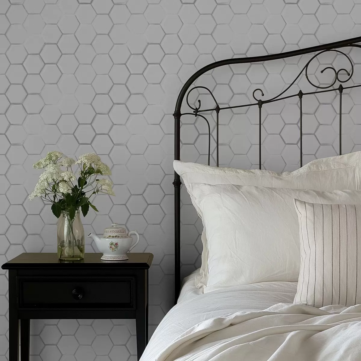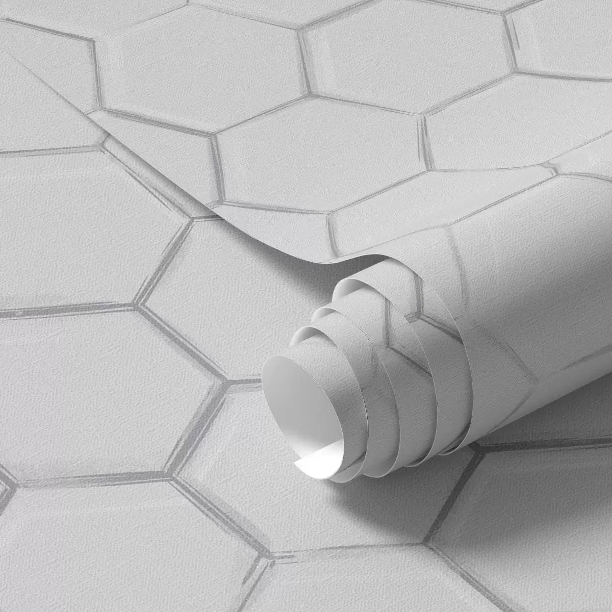Papel pintado Hexágonos tridimensionales blancos sobre un fondo liso. Nr. a01059