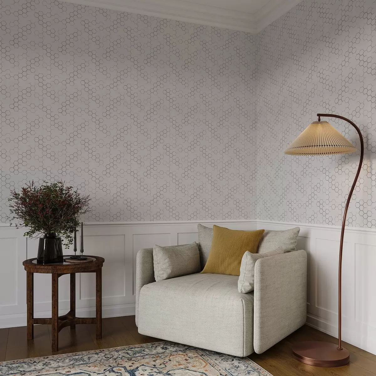 Papel pintado Patrón de panal claro con finos contornos grises. Nr. a01061