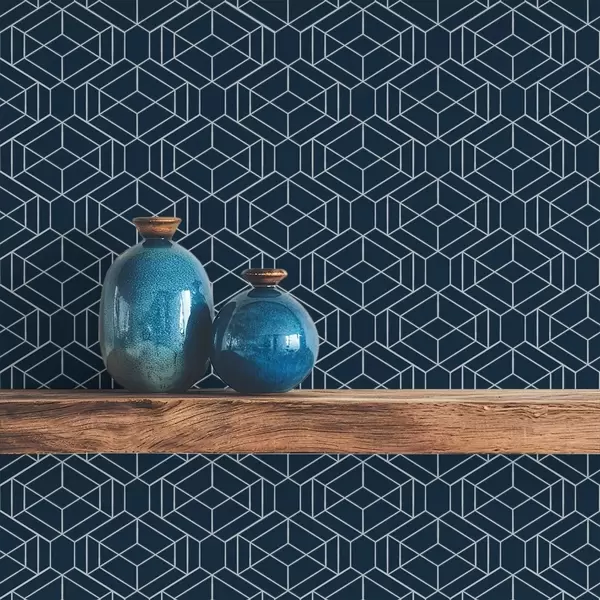 Papel pintado Celosía geométrica de cubos en azul marino oscuro Nr. a01066v1