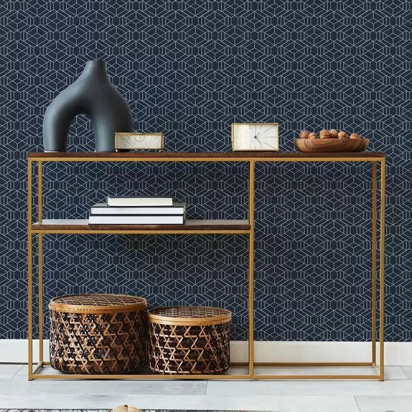 Papel pintado Celosía geométrica de cubos en azul marino oscuro Nr. a01066v1