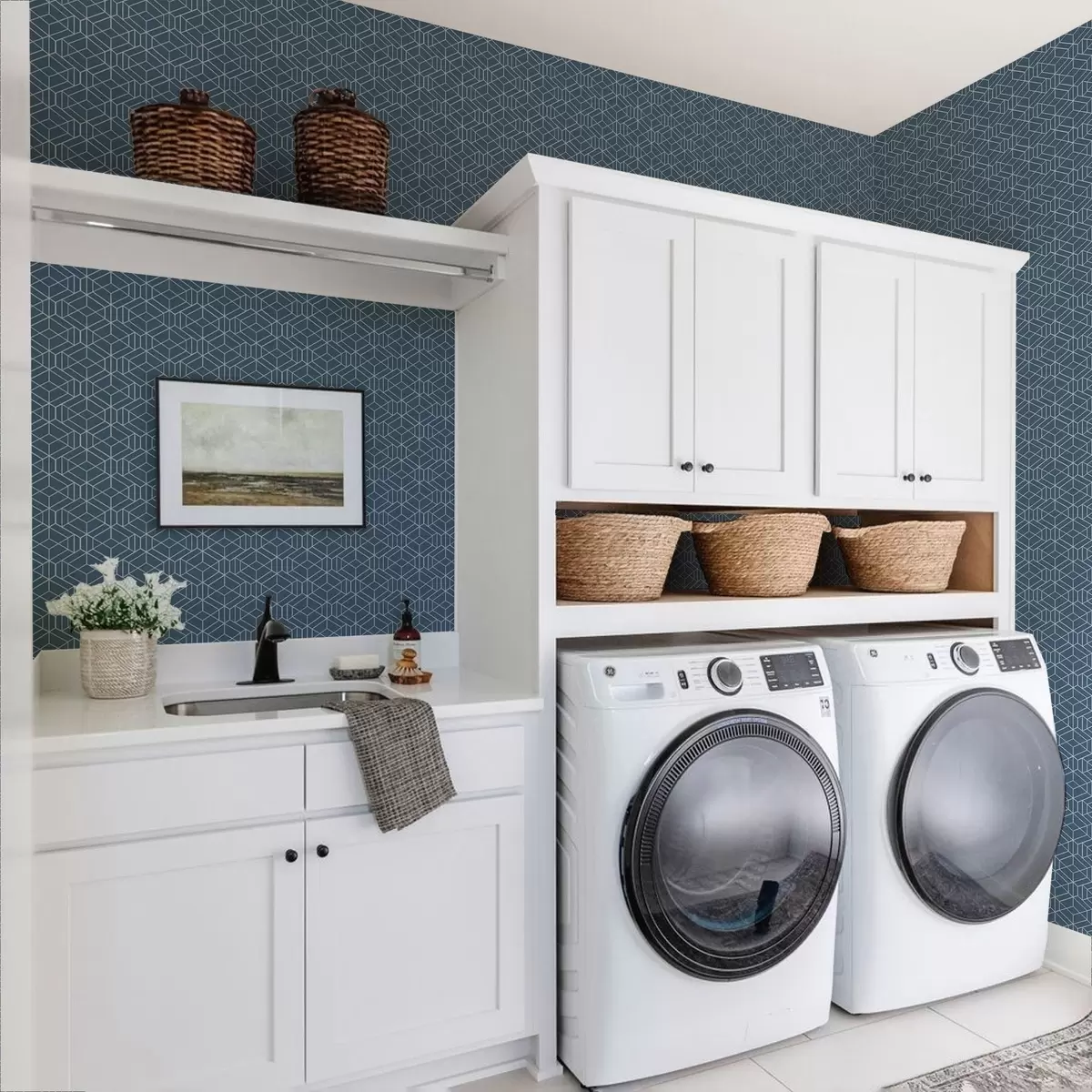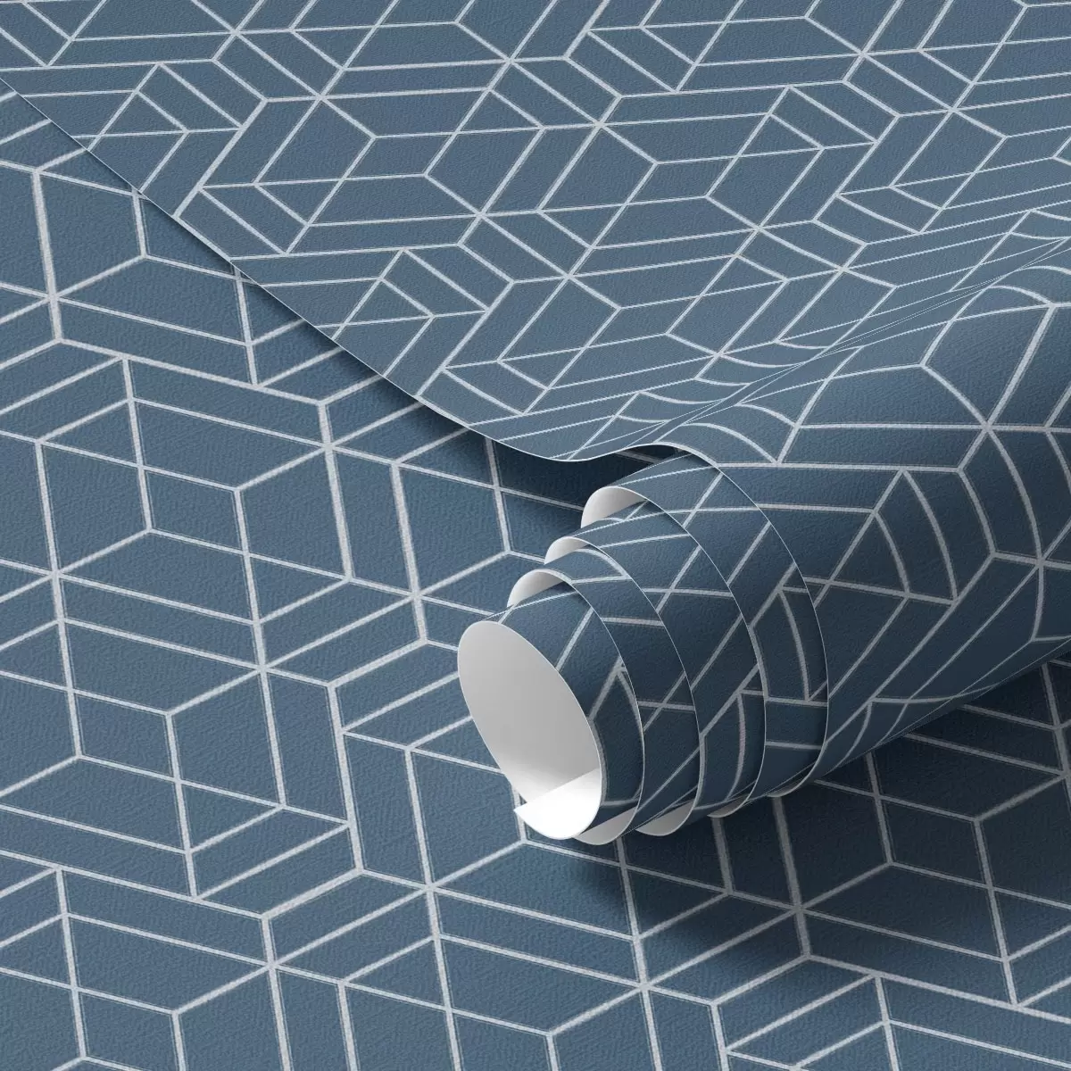Papel pintado Fondo azul con cubos lineales blancos en una cuadrícula Nr. a01067v1