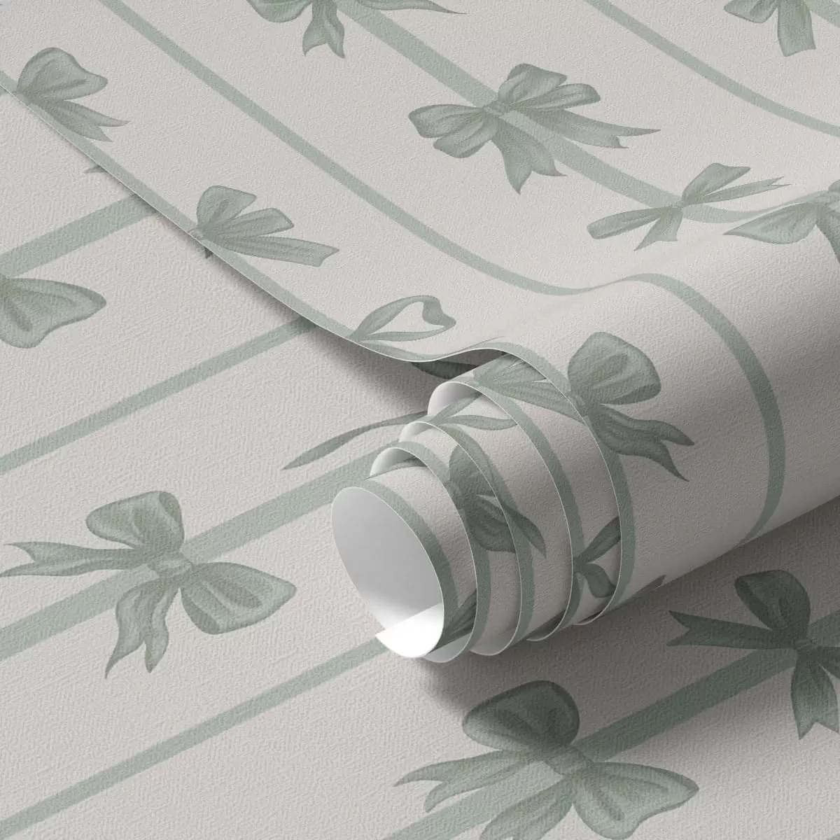 Papel pintado Lazos verdes a rayas sobre fondo beige Nr. a01075v1