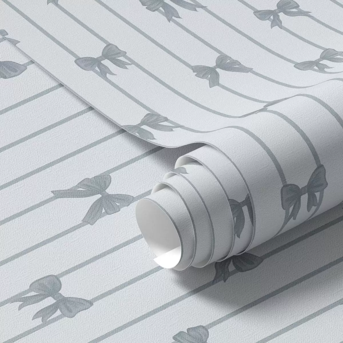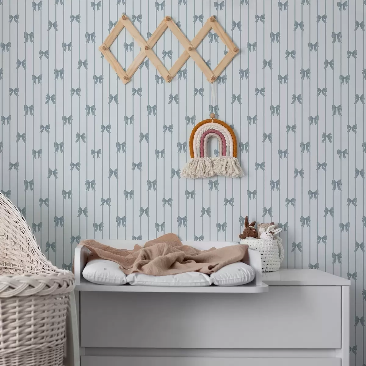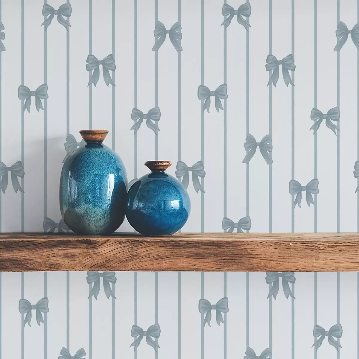 Papel pintado Diseño de rayas claras con cintas y lazos Nr. a01076v3