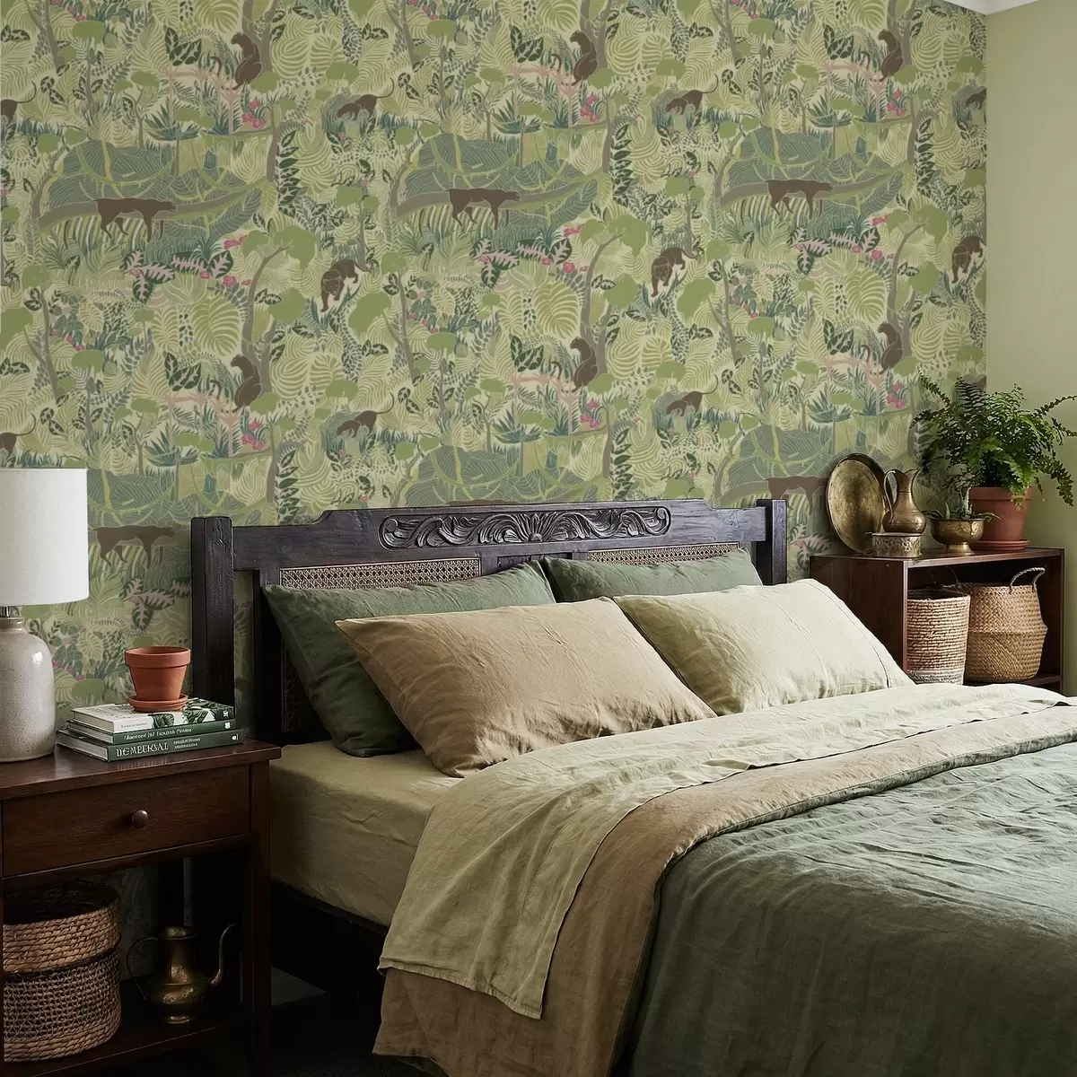 Papel pintado Escena forestal con animales y follaje denso Nr. a01108