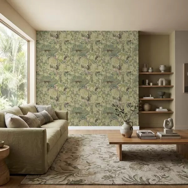 Papel pintado Escena forestal con animales y follaje denso a01108