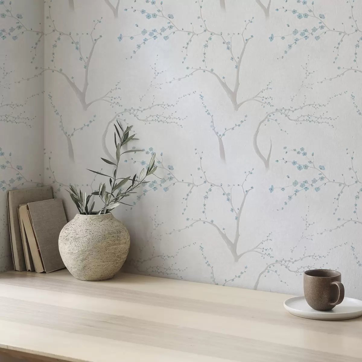 Papel pintado Ramas ligeras con flores azules Nr. a01111