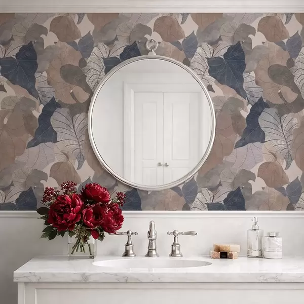 Papel pintado Grandes hojas estilizadas en tonos pastel. Nr. a01115