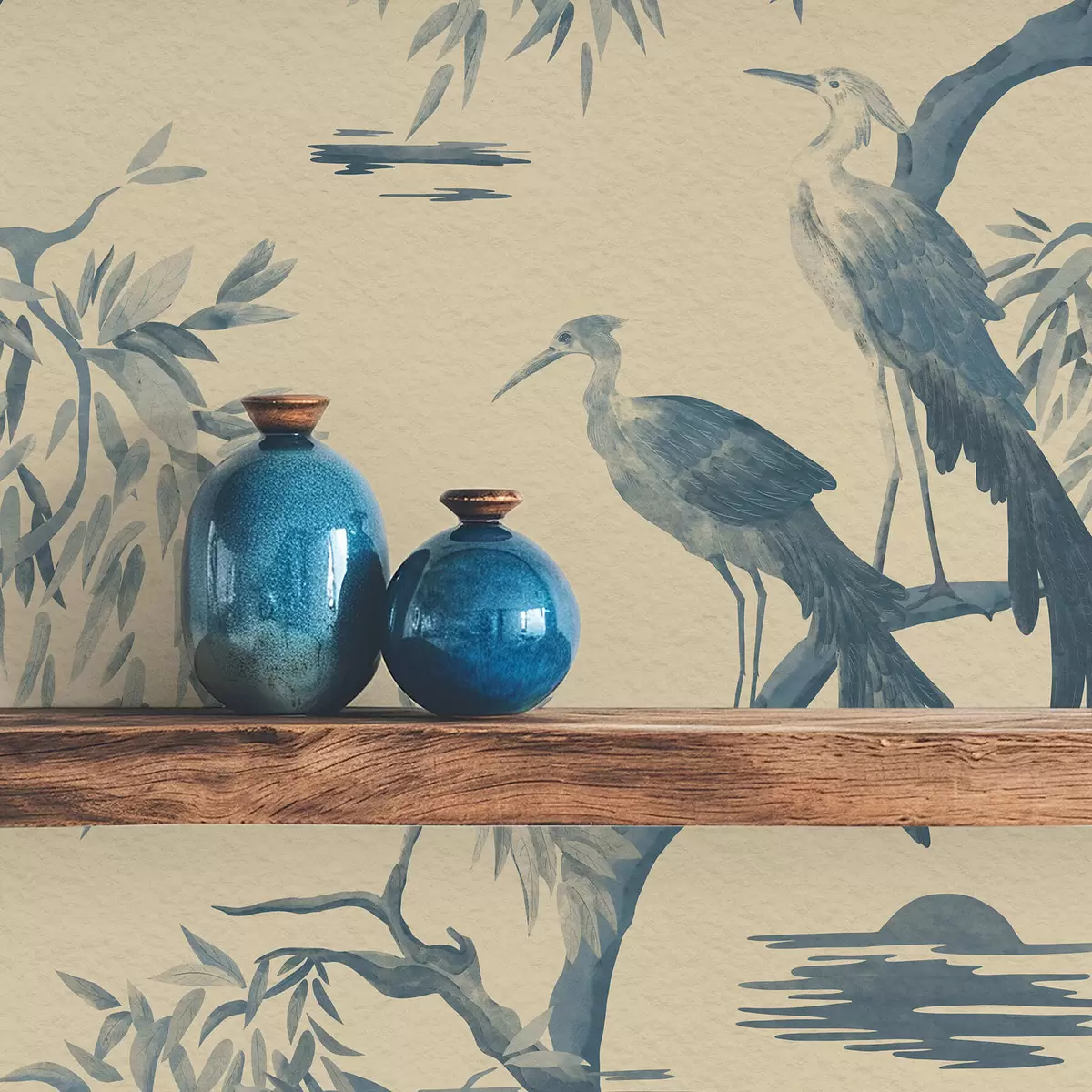 Papel pintado Pájaros en una rama en tonos azules Nr. a01116
