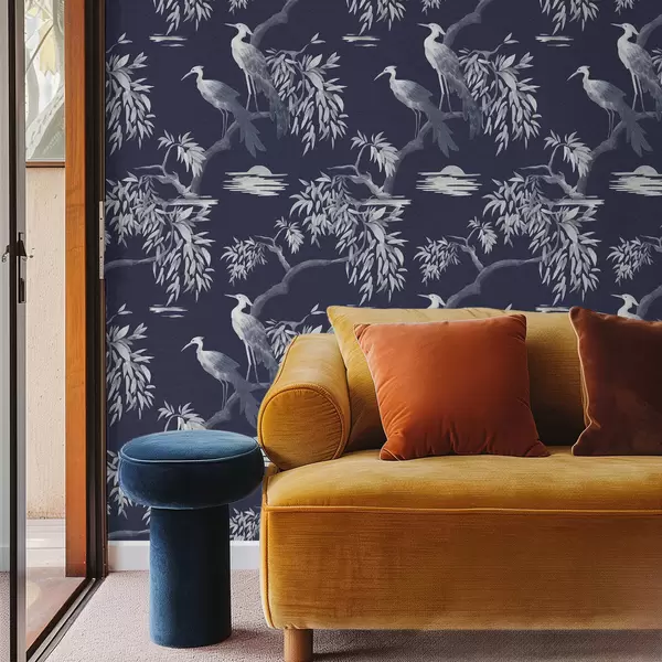 Papel pintado Pájaros en una rama sobre fondo azul oscuro a01116v1