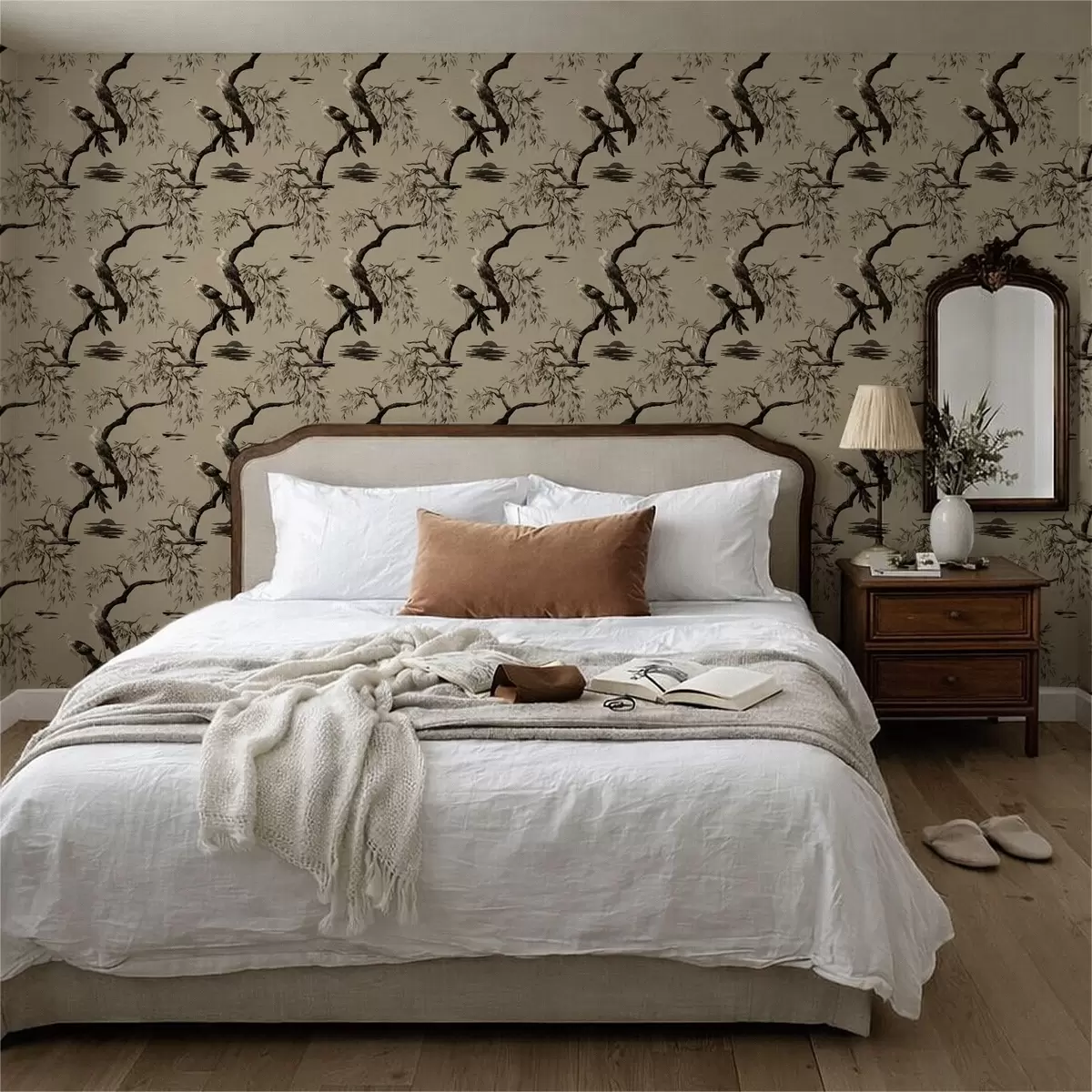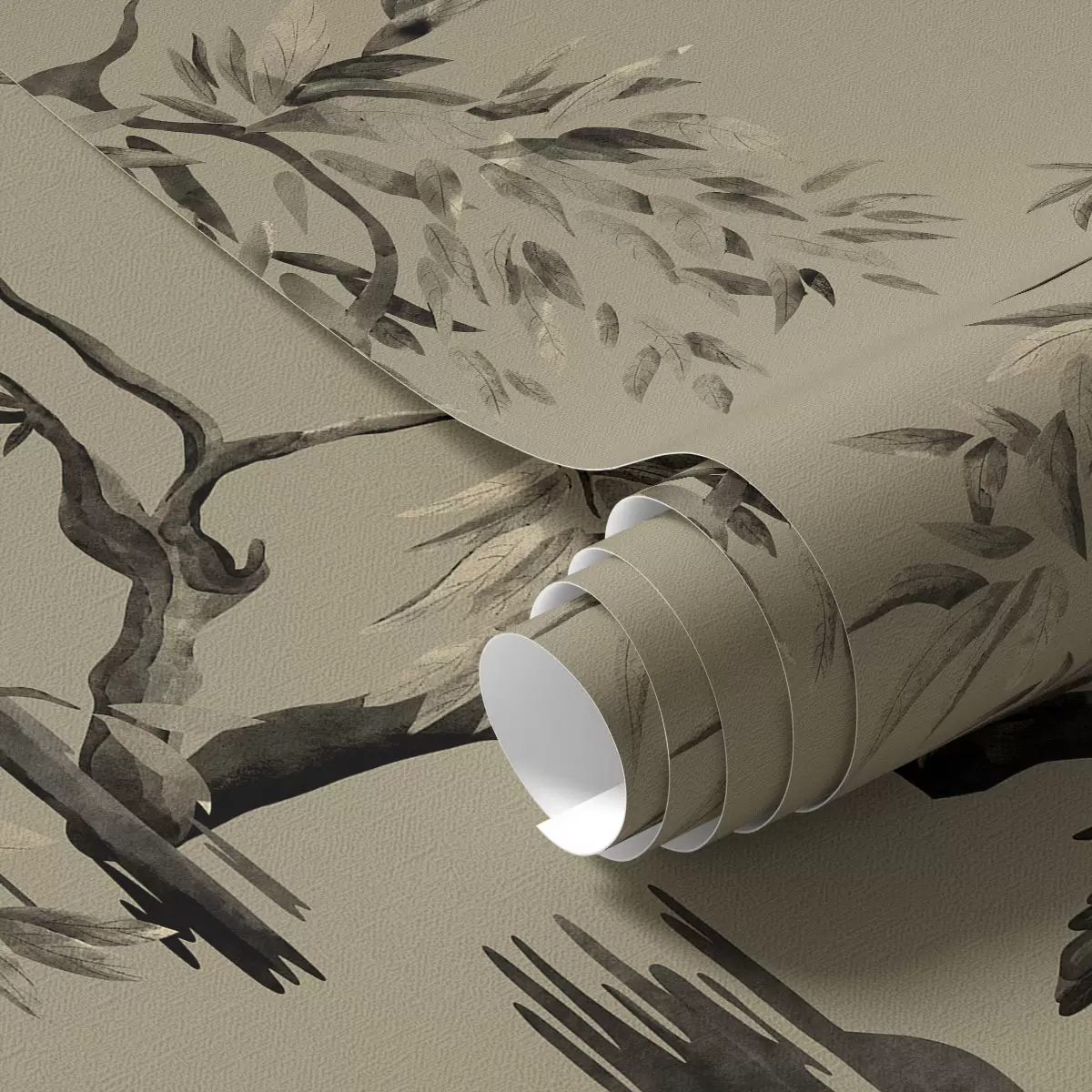 Papel pintado Pájaros en una rama en tonos monocromáticos Nr. a01116v2