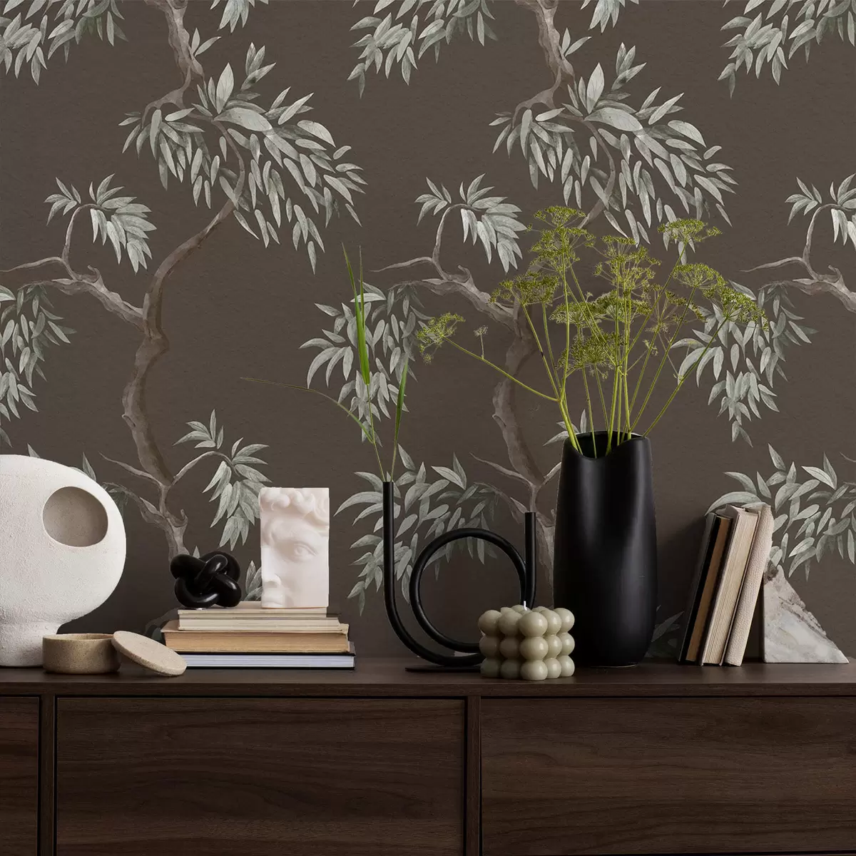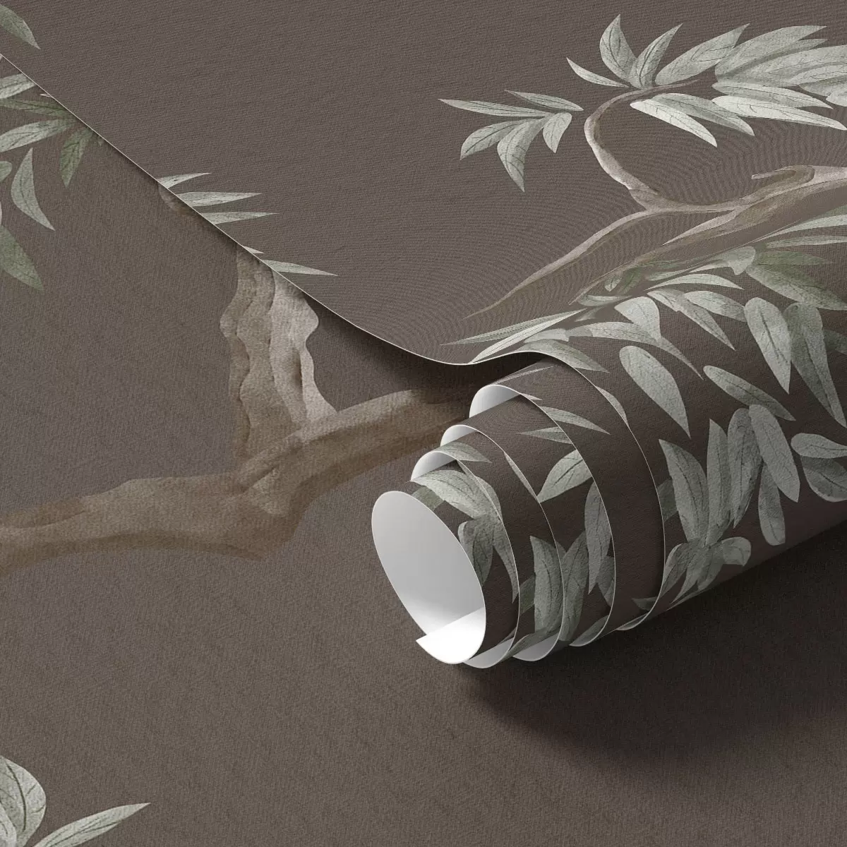 Papel pintado Rama de árbol con hojas sobre fondo marrón Nr. a01117v3