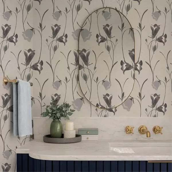 Papel pintado Flores grises en forma de campana sobre fondo beige claro. Nr. a01119