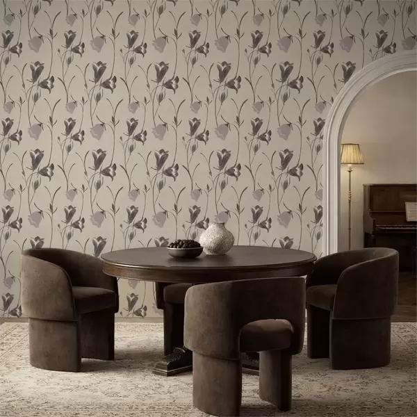 Papel pintado Flores grises en forma de campana sobre fondo beige claro. Nr. a01119