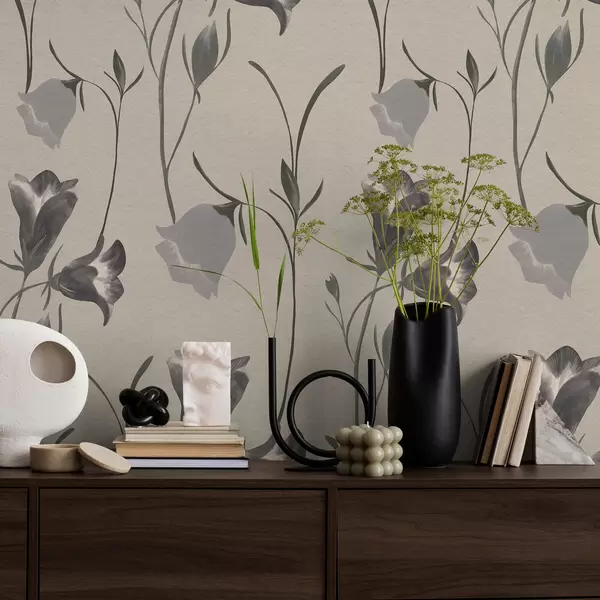 Papel pintado Flores grises en forma de campana sobre fondo beige claro. Nr. a01119