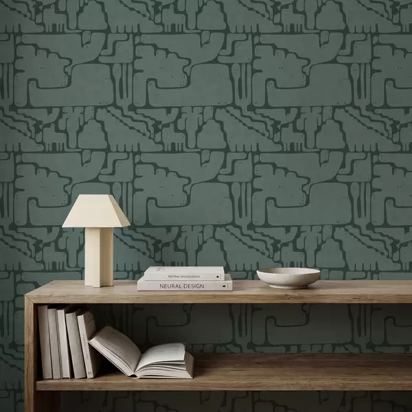 Papel pintado Patrón abstracto en tonos verde azulado Nr. a01122v3