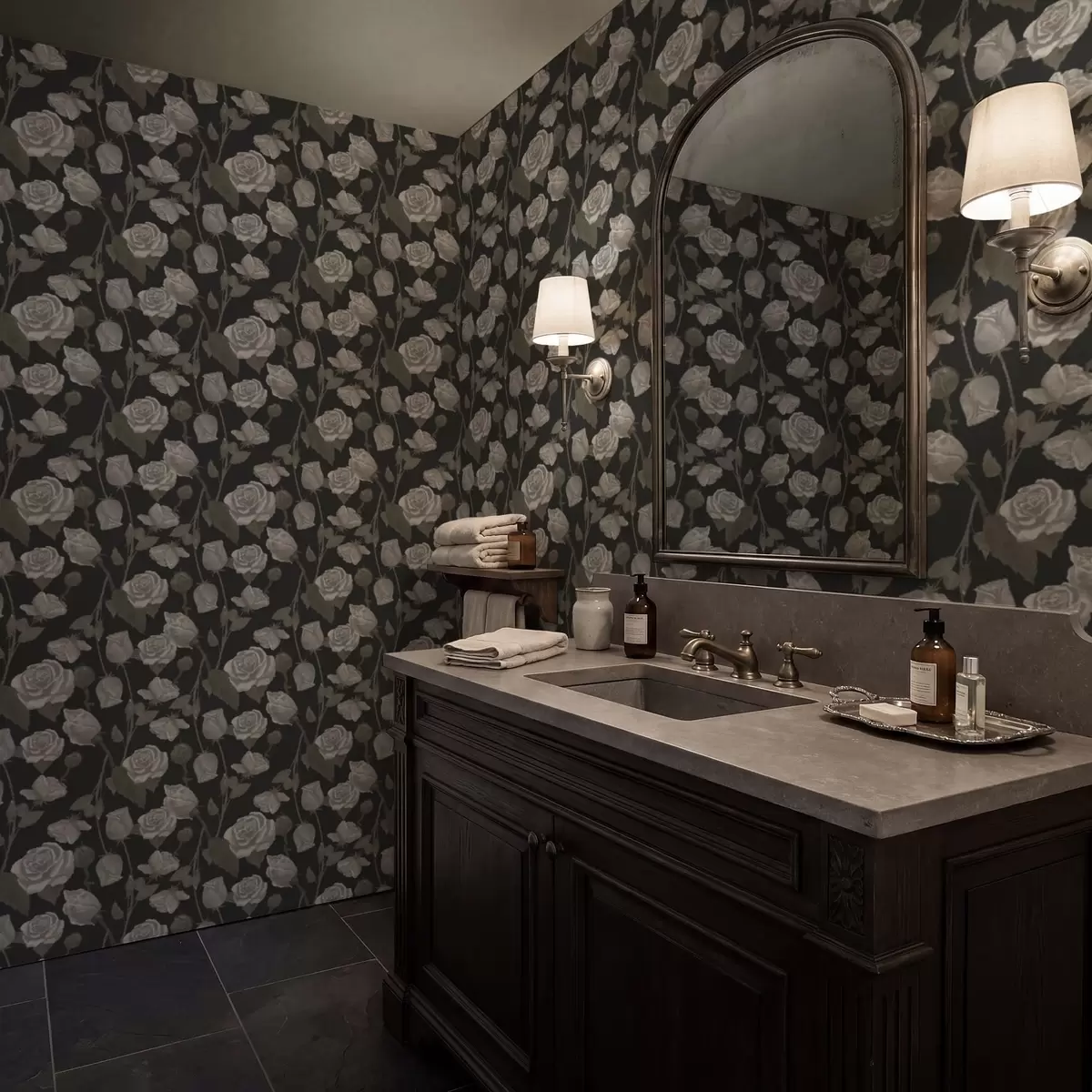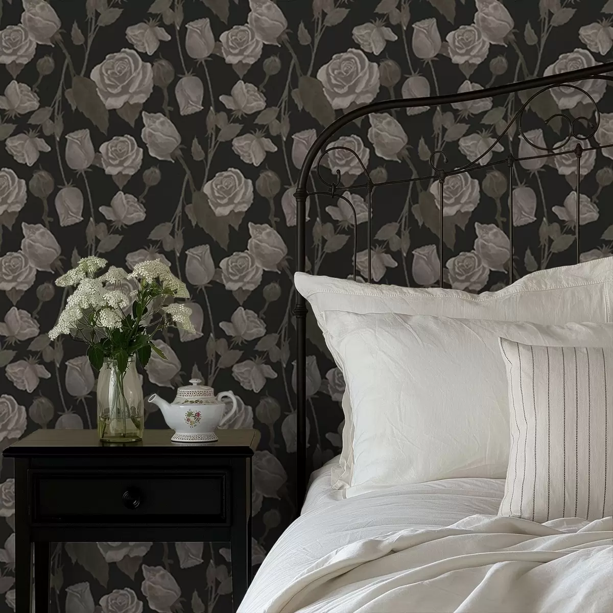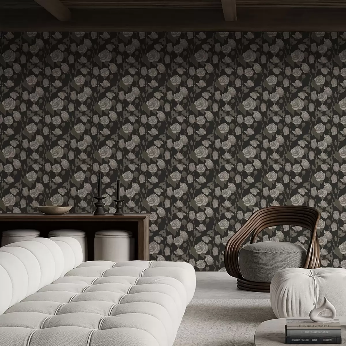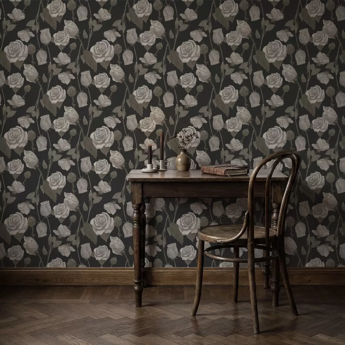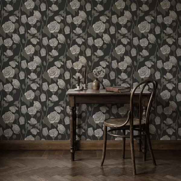 Papel pintado Estampado floral con rosas sobre fondo oscuro Nr. a01123