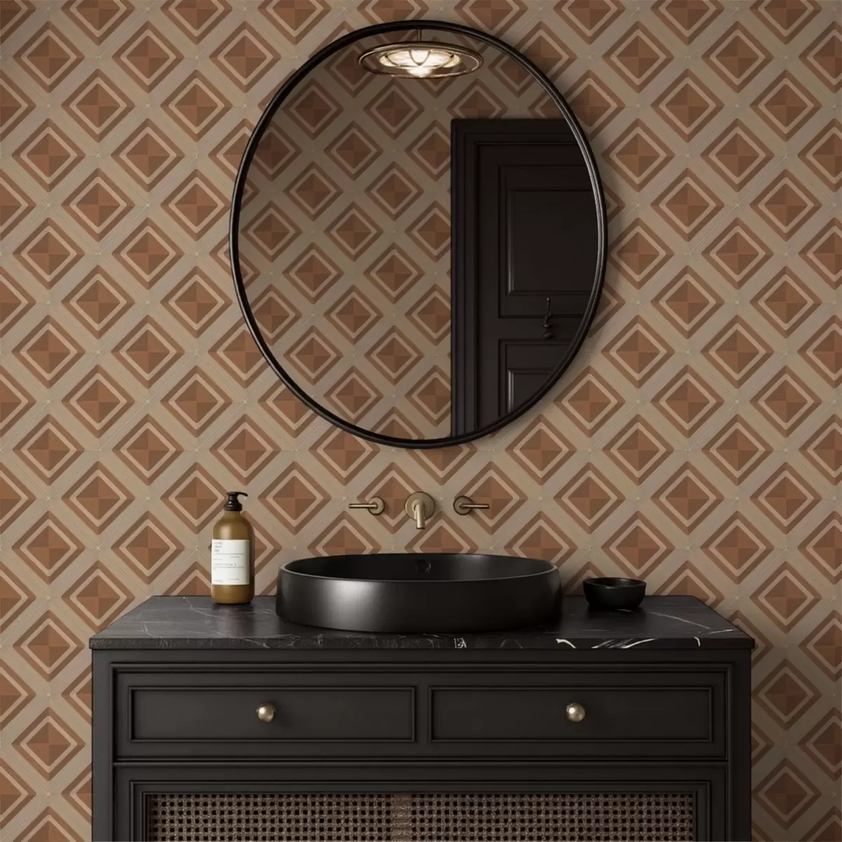 Papel pintado Diseño geométrico de rombos en tonos terracota. Nr. a01128