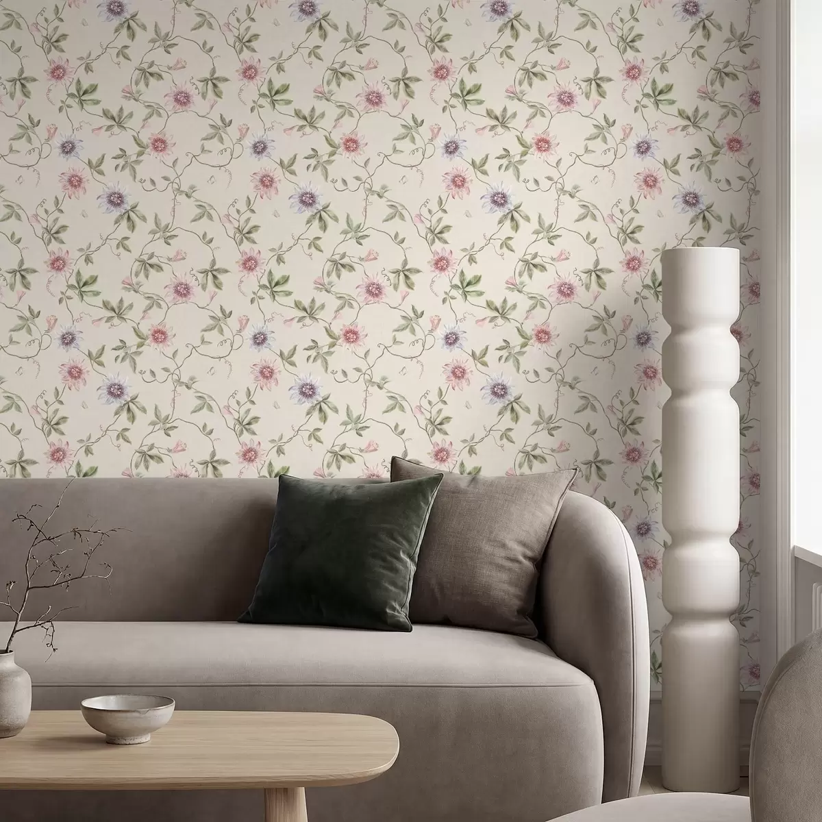 Papel pintado Diseño con flores exóticas y enredaderas Nr. a01131
