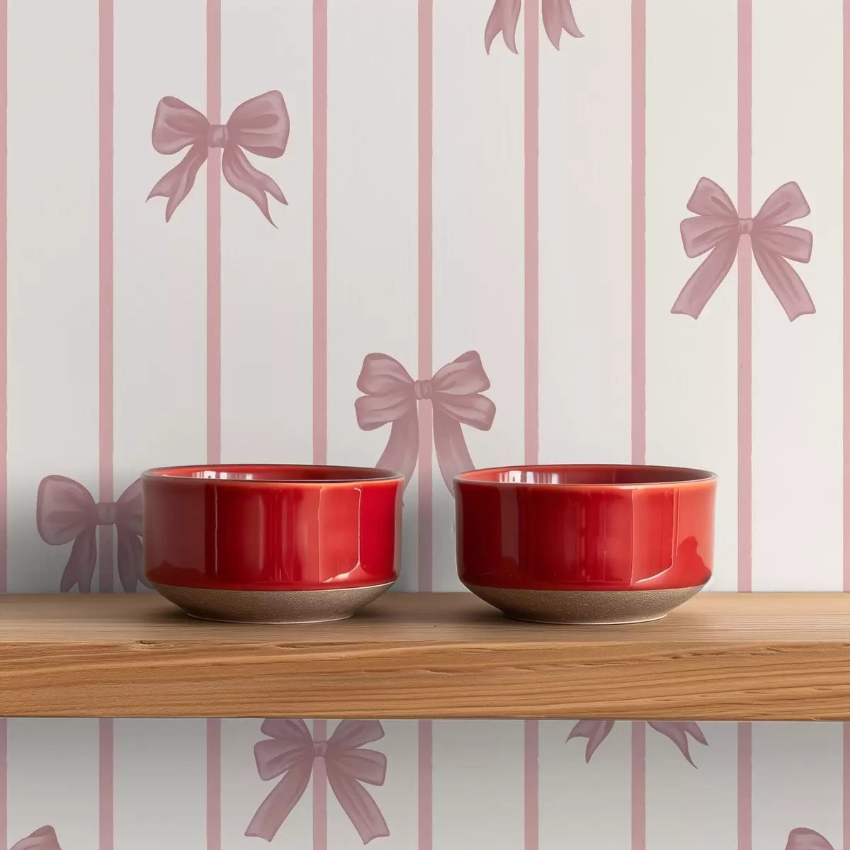Papel pintado Lazos rosas sobre rayas verticales sobre un fondo claro Nr. a01162