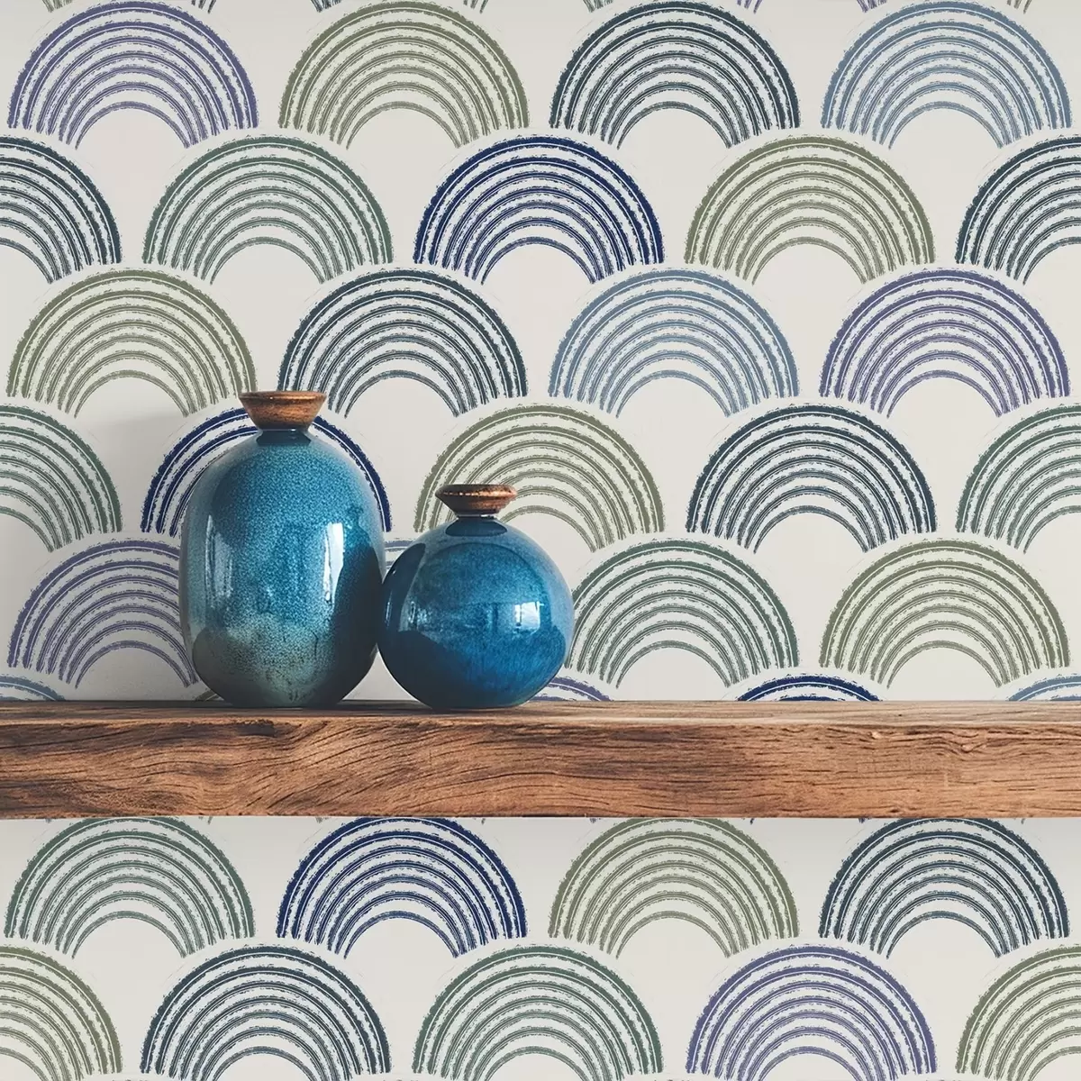 Papel pintado Arcos azules y verdes en un patrón repetitivo Nr. a01164v2