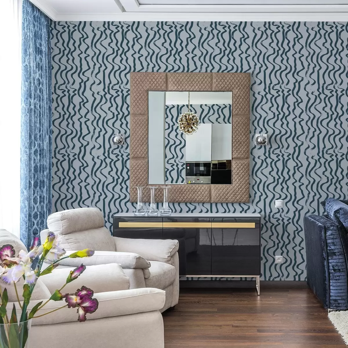 Papel pintado Líneas onduladas oscuras sobre fondo azul Nr. a01168v1