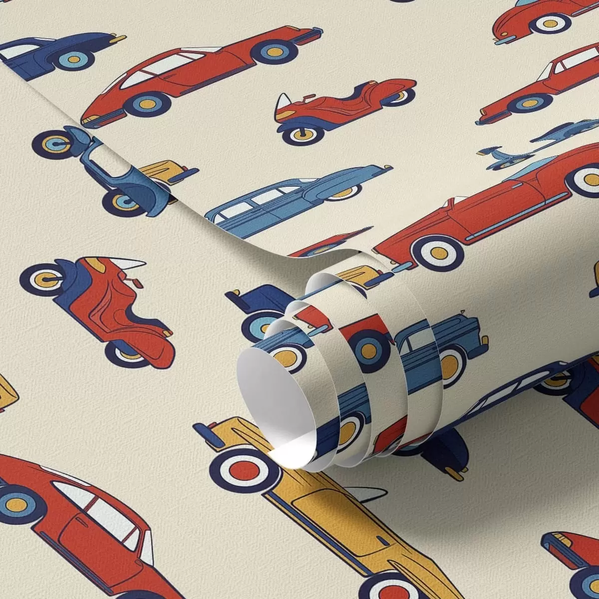 Papel pintado Coches y motos retro de colores vivos sobre un fondo claro Nr. a01172v1
