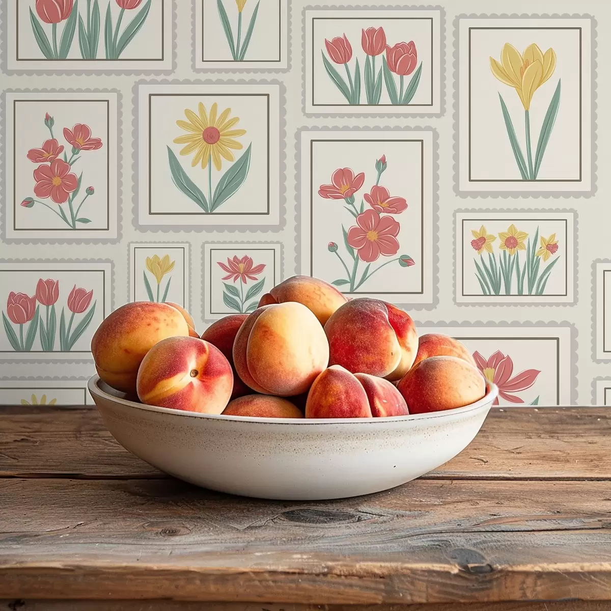 Papel pintado Ilustraciones florales enmarcadas sobre fondo claro Nr. a01173v1