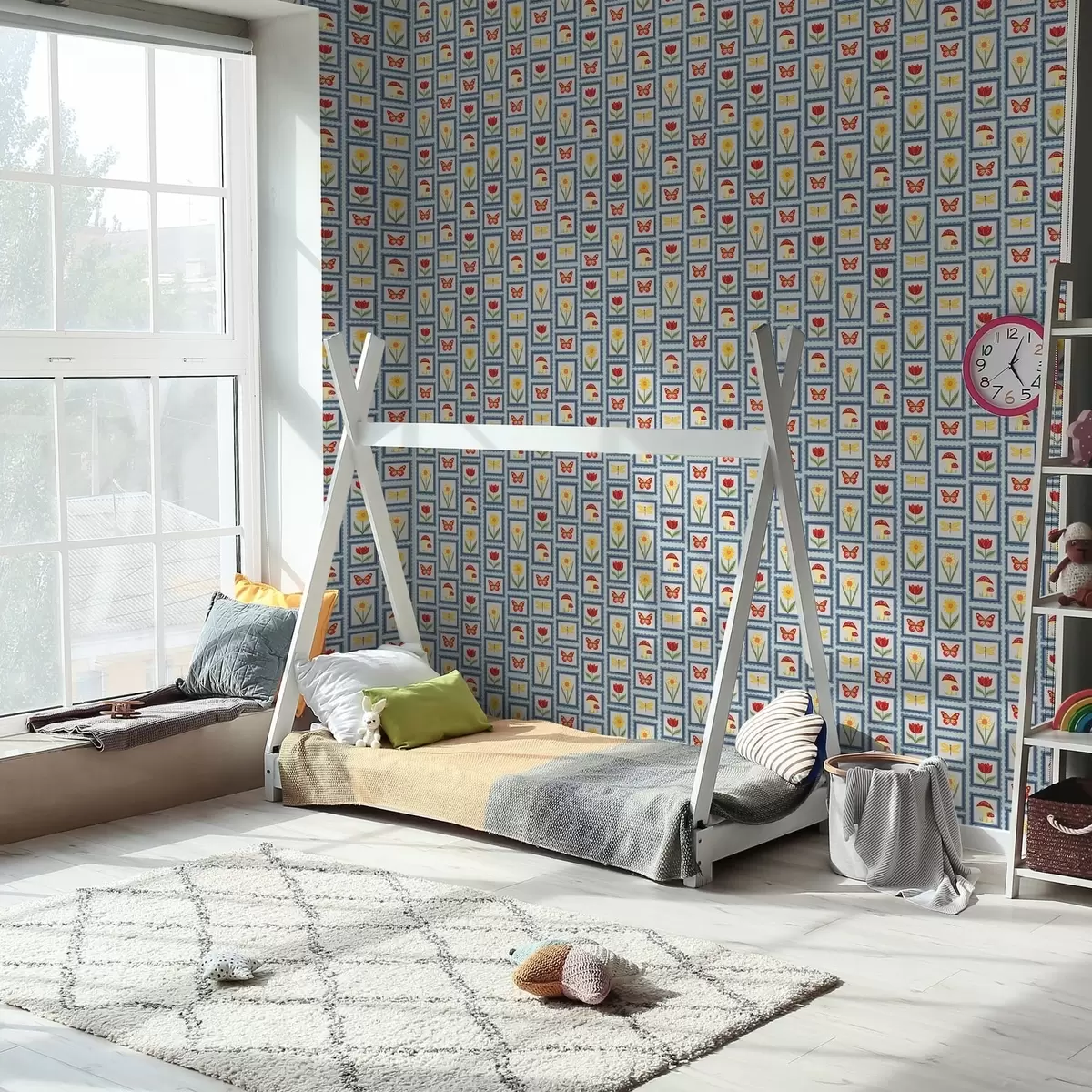 Papel pintado Ilustraciones enmarcadas en tonos azules Nr. a01175v2