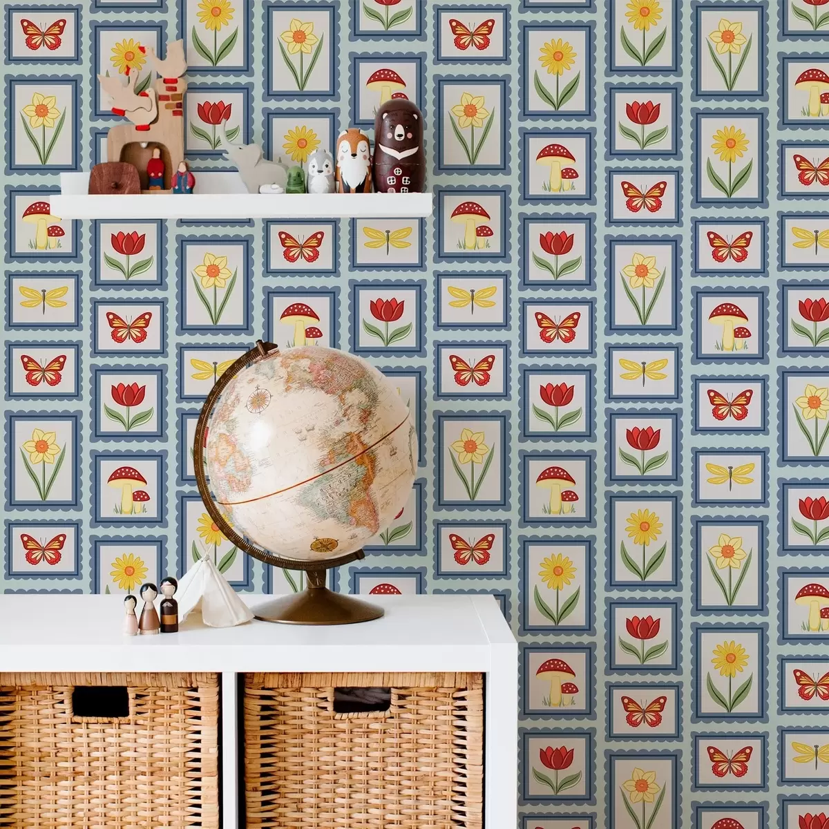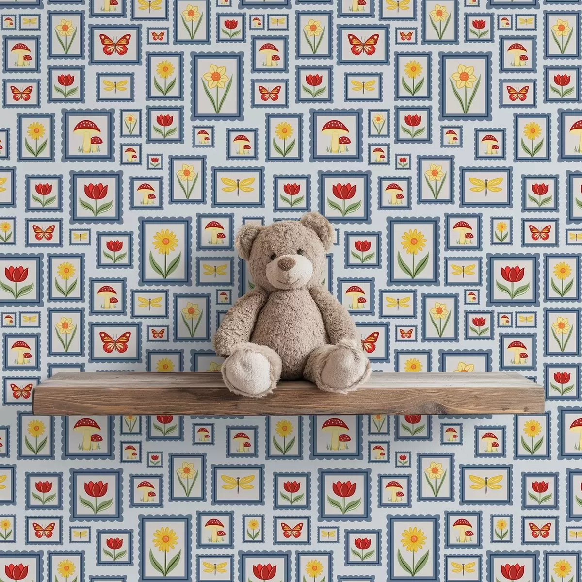 Papel pintado Ilustraciones enmarcadas sobre fondo azul Nr. a01176
