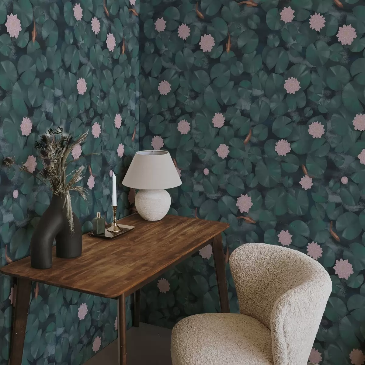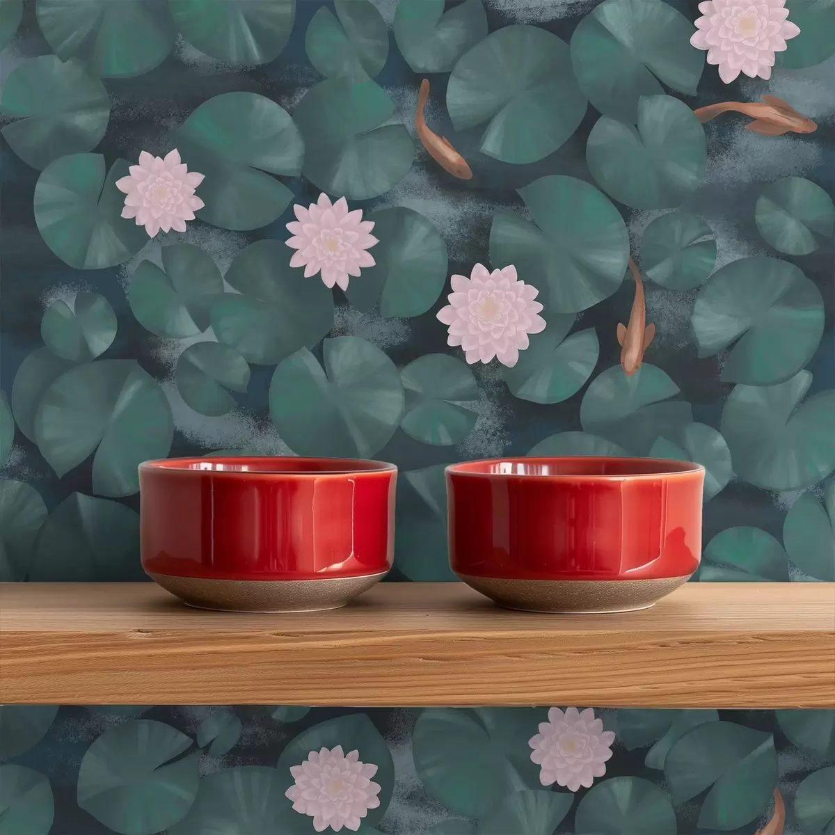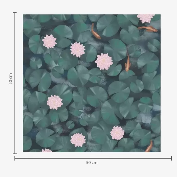 Papel pintado Nenúfares con flores y peces sobre fondo oscuro Nr. a01177