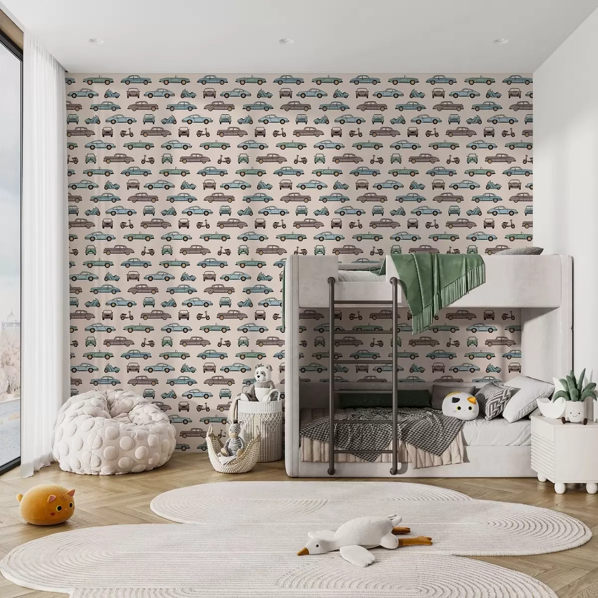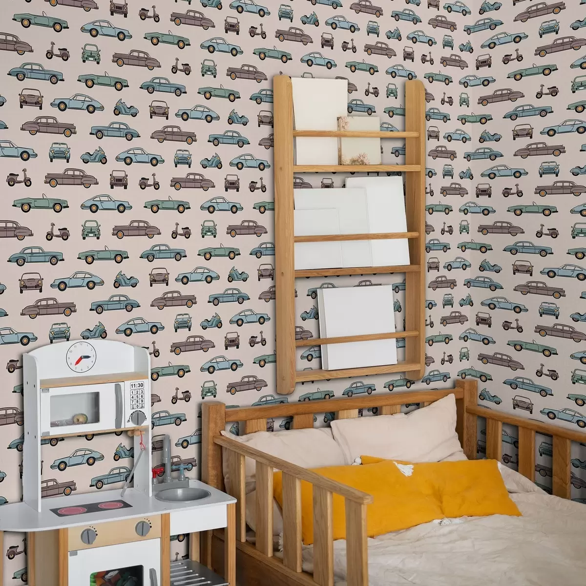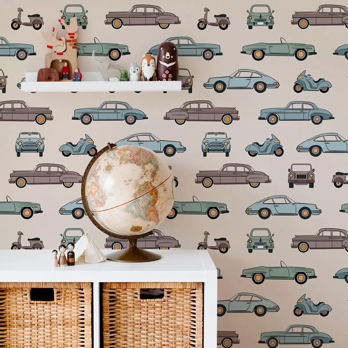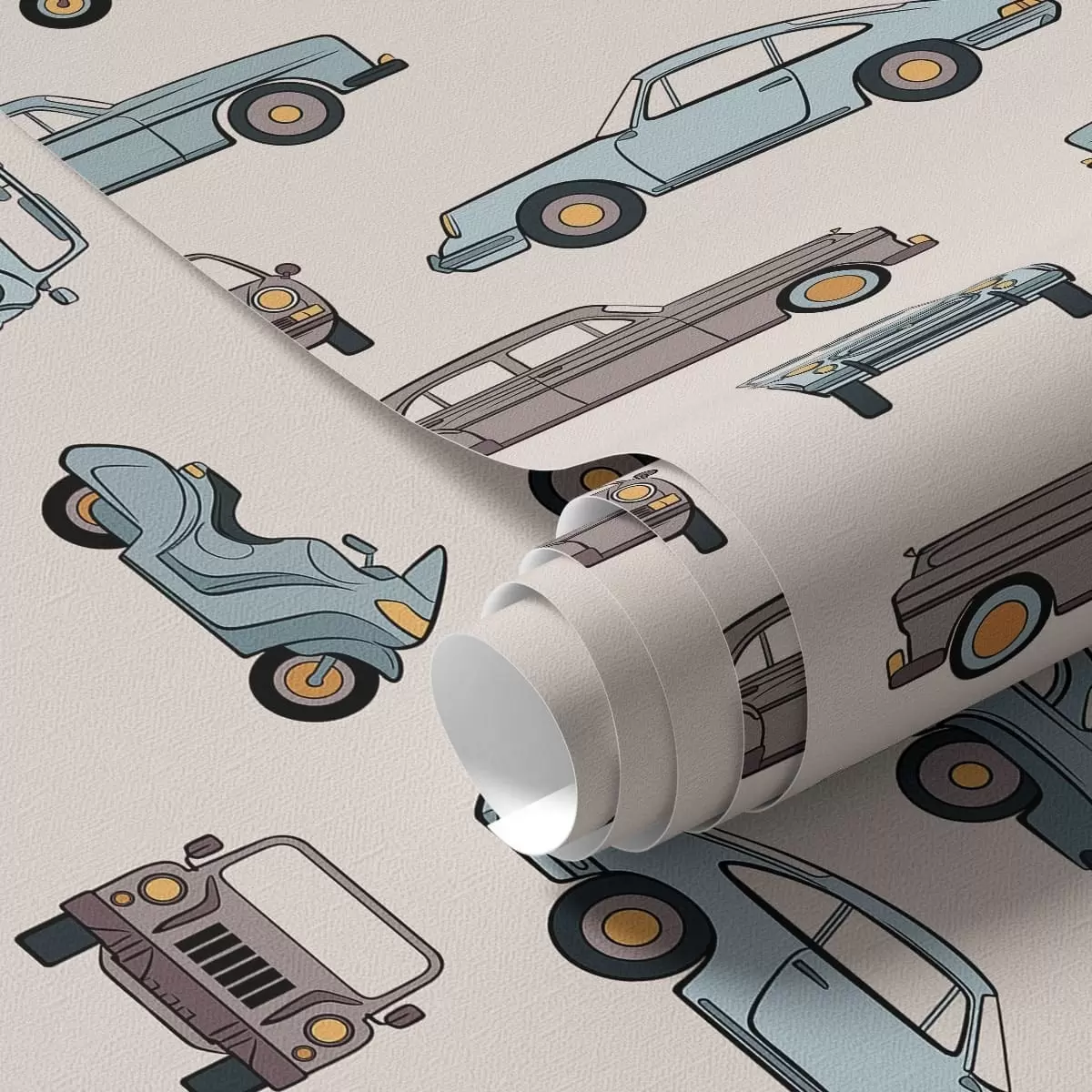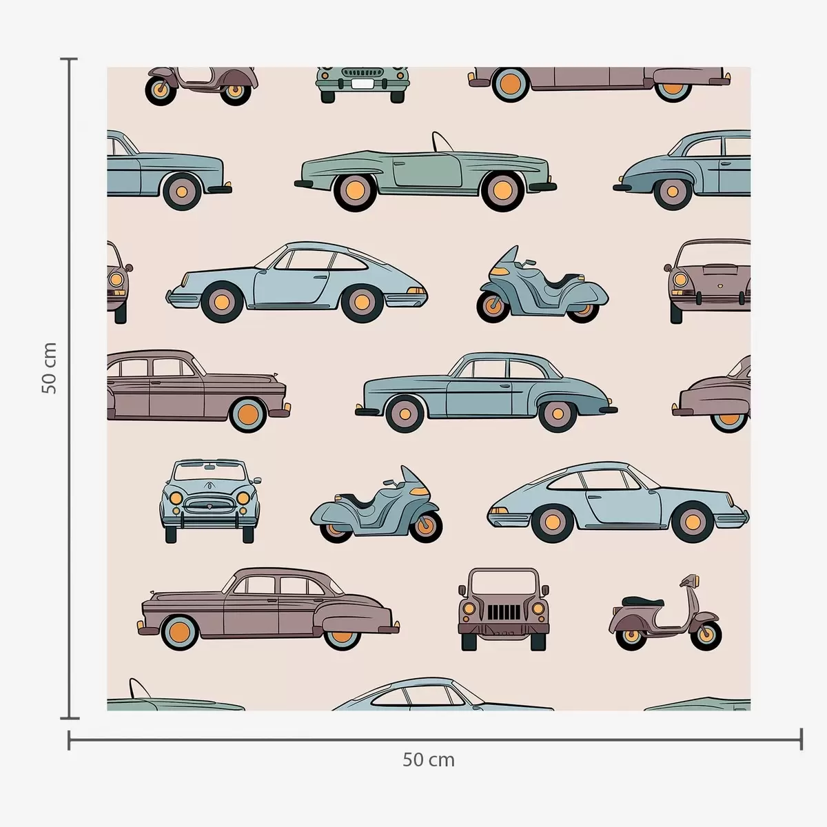Papel pintado Coches y motos retro sobre fondo beige Nr. a01178v1