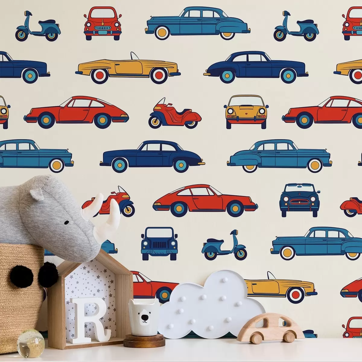 Papel pintado Coches y motos retro de colores vivos Nr. a01178v2