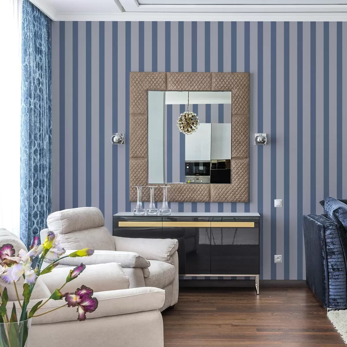 Papel pintado Rayas verticales azules y grises Nr. a01180v1