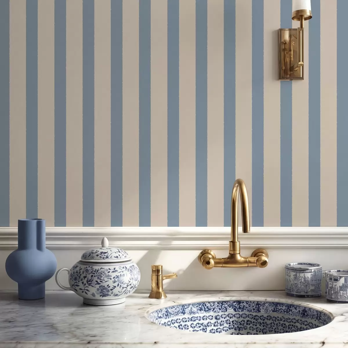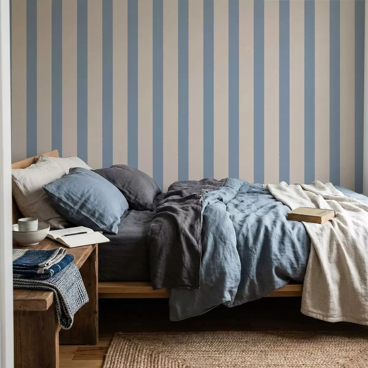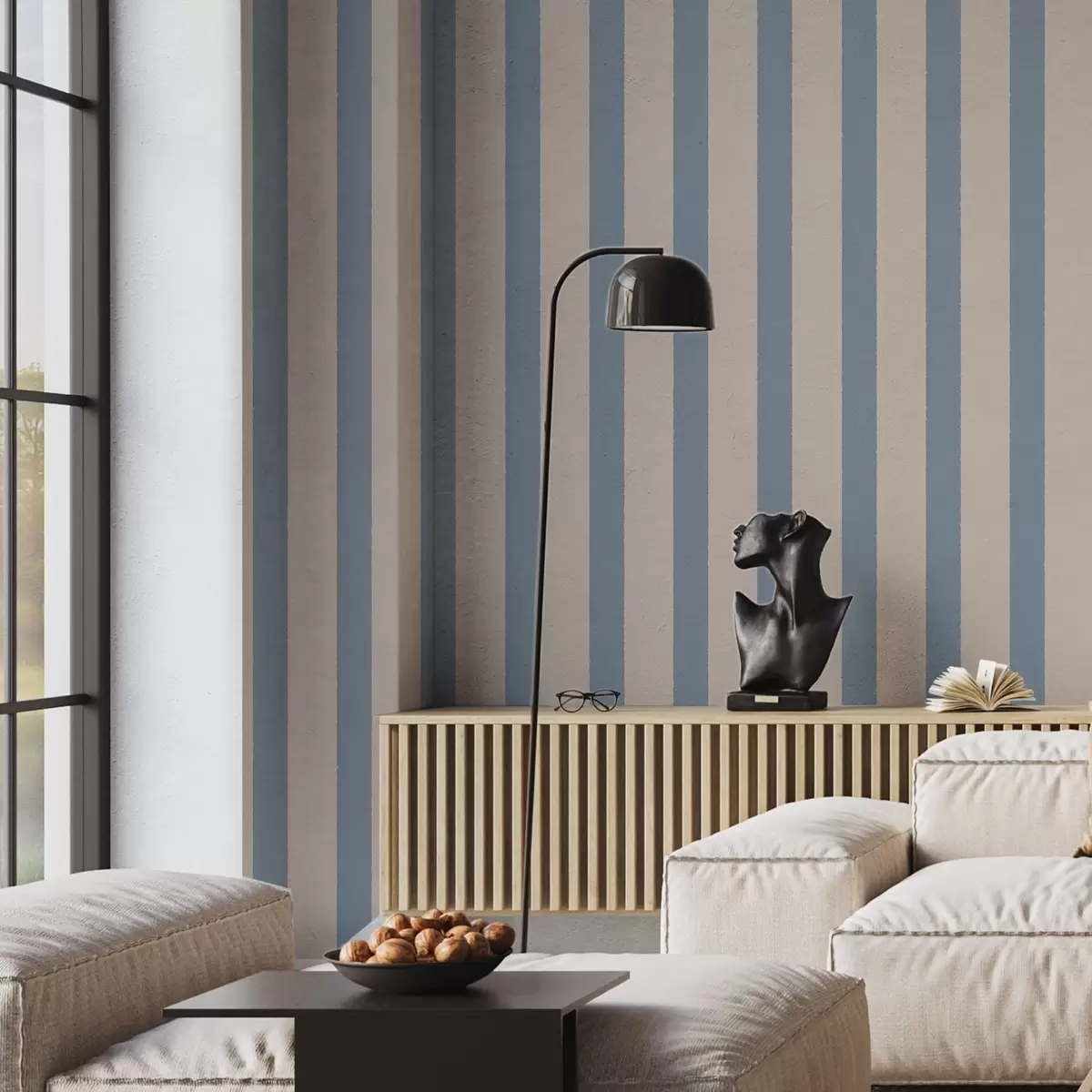 Papel pintado Rayas verticales en tonos beige y azul claro Nr. a01180v3
