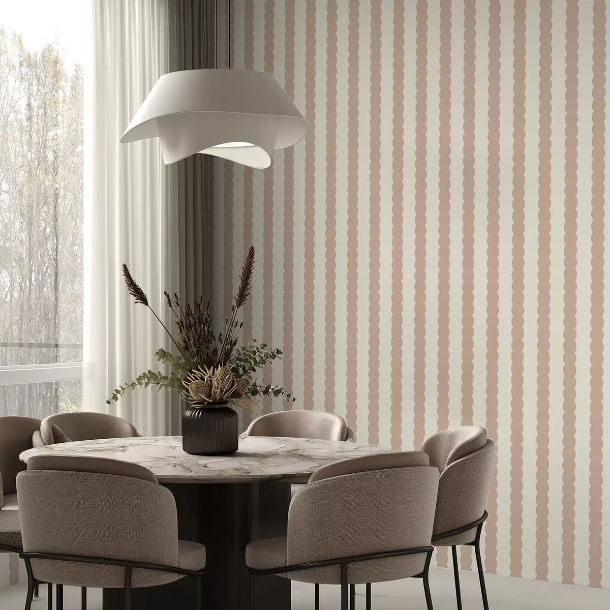 Papel pintado Rayas onduladas en color beige, de estilo minimalista Nr. a01182v2