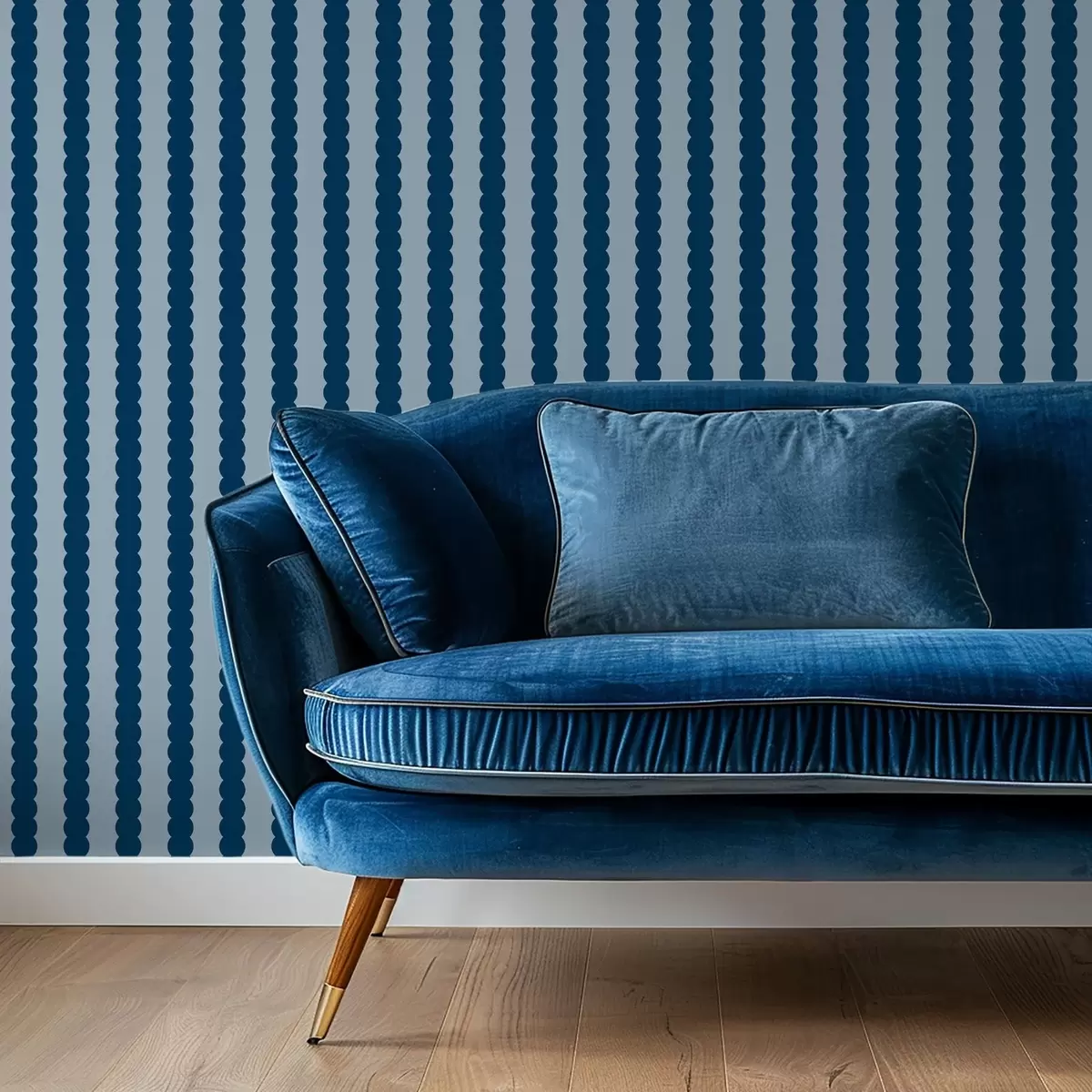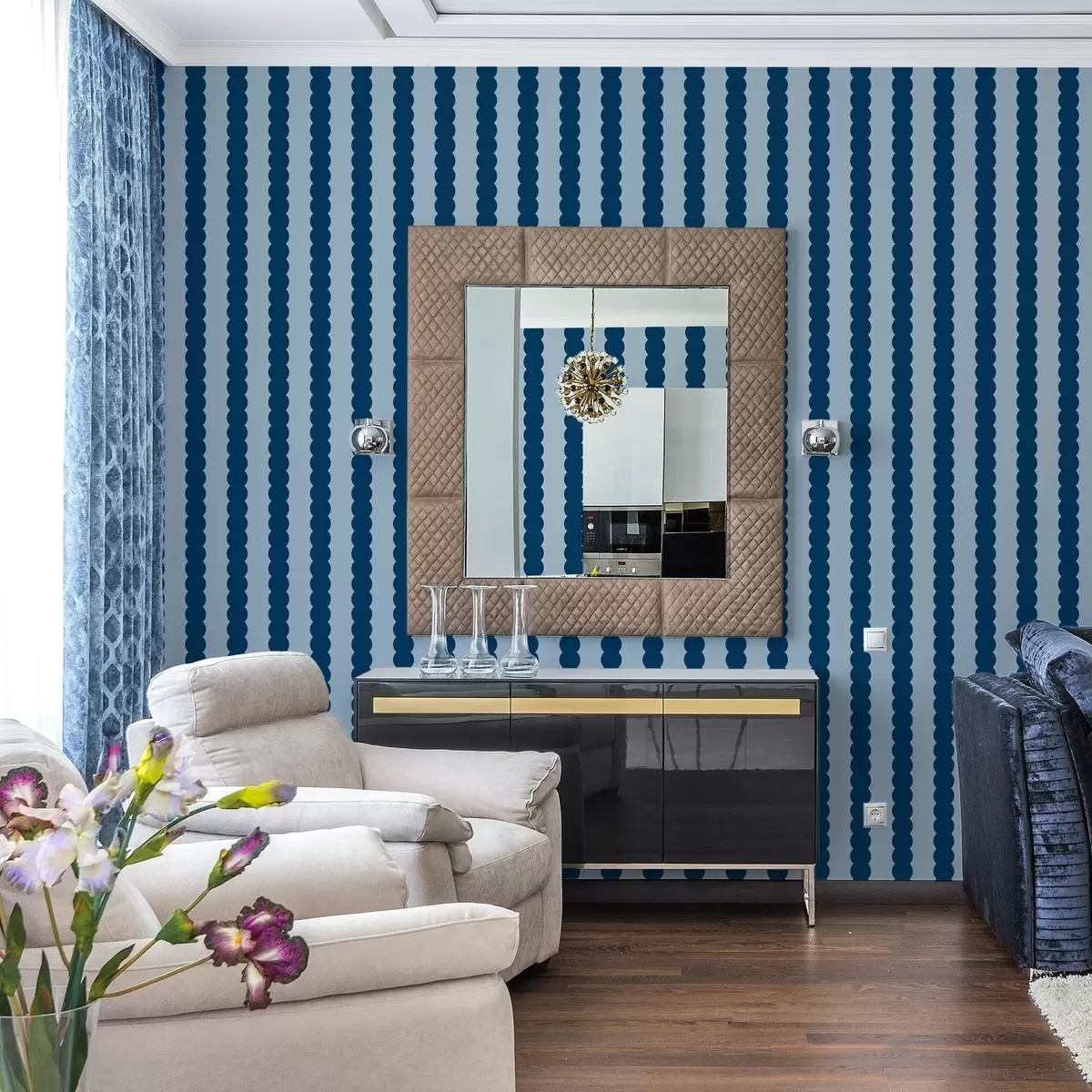 Papel pintado Rayas onduladas de color azul oscuro en estilo minimalista Nr. a01182v3