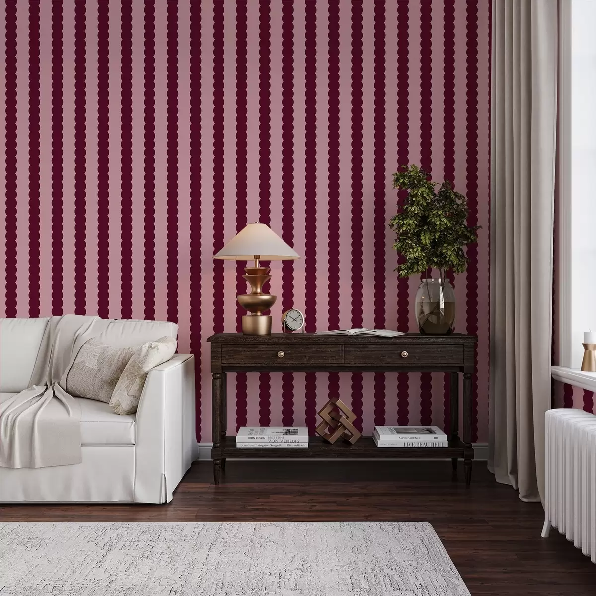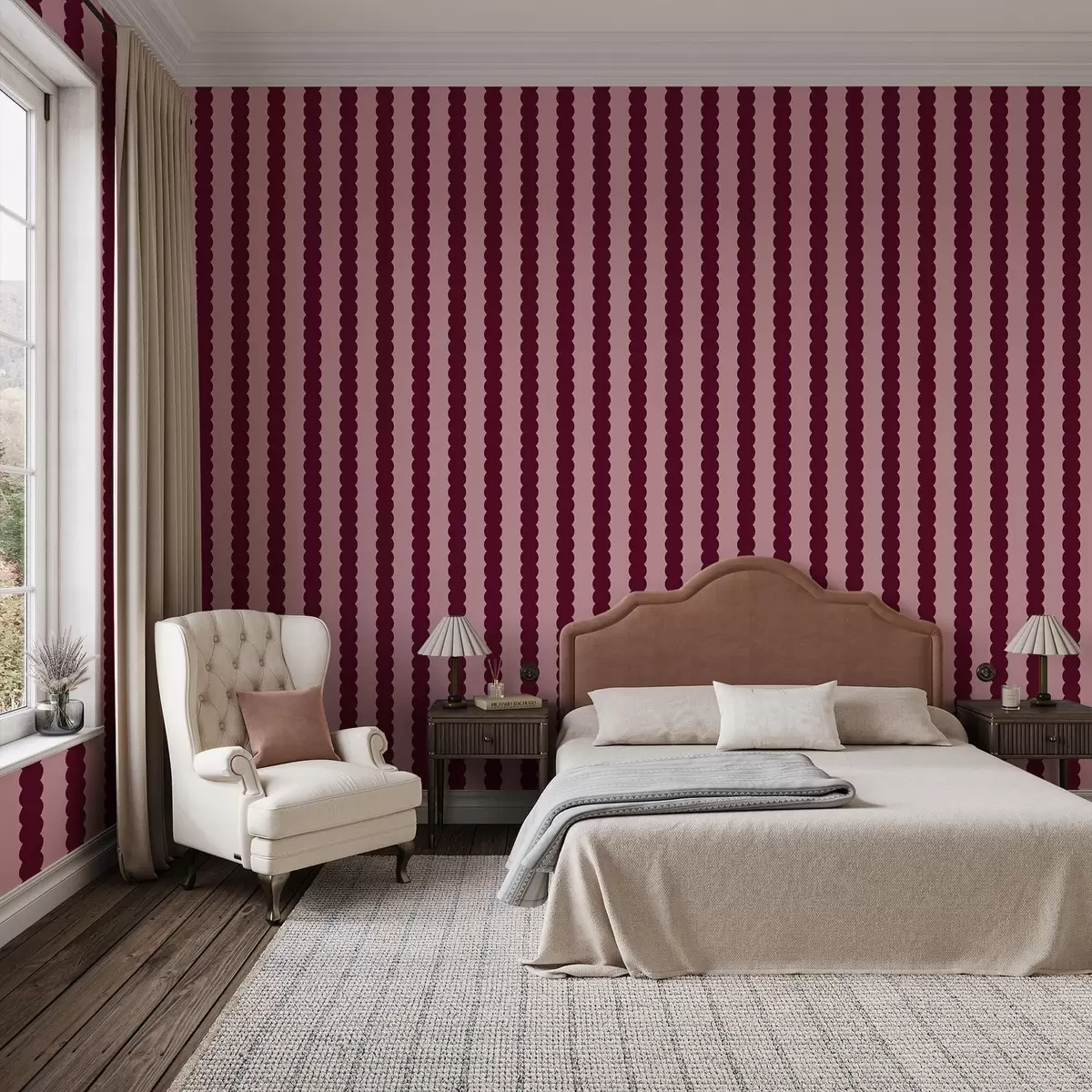 Papel pintado Rayas onduladas en color burdeos, de estilo minimalista Nr. a01182v5