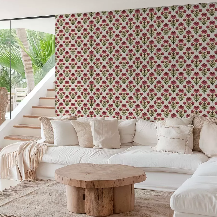 Adorno floral simétrico en intensos tonos rojos y verdes